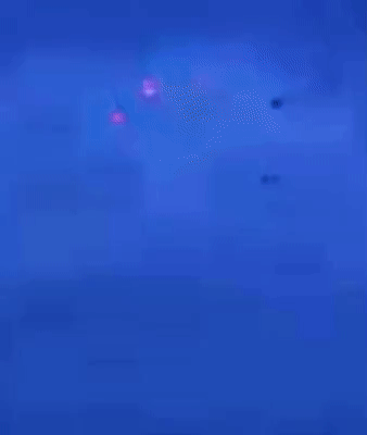 The video was shot by Richard Jellig on April 19 (below left). A number of bright objects that some believe are Chinese Lanterns first appear, slowing drifting right to left in the video. Less obvious, below these objects, are dark regions that appear, disappear, split, and merge. One possibility is a flock of birds. However the resemblance to a dark object tracked over a considerable distance in the Aquadilla video is uncanny.